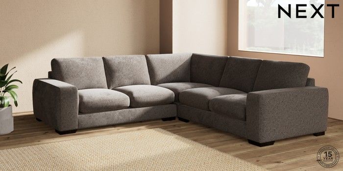 7.2.10 Houghton Deep Sit Medium Corner Sofa - Universal Chunky Chenille Mink Brown Large Square Angle - Dark | Made Click here to use our website with more accessibility support, for example screen readers