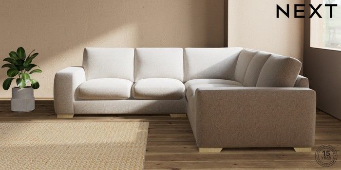 7.2.10 Houghton Deep Sit Medium Corner Sofa - Universal Chunky Marl Oyster Large Square Angle - Light | Made Click here to use our website with more accessibility support, for example screen readers