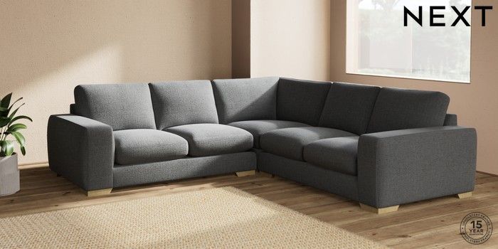 7.2.10 Houghton Deep Sit Medium Corner Sofa - Universal Chunky Texture Dark Grey Large Square Angle - Light | Made Click here to use our website with more accessibility support, for example screen readers