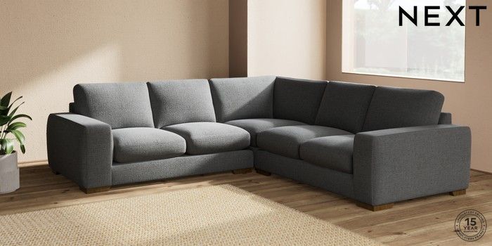7.2.10 Houghton Deep Sit Medium Corner Sofa - Universal Chunky Texture Dark Grey Large Square Angle - Mid | Made Click here to use our website with more accessibility support, for example screen readers