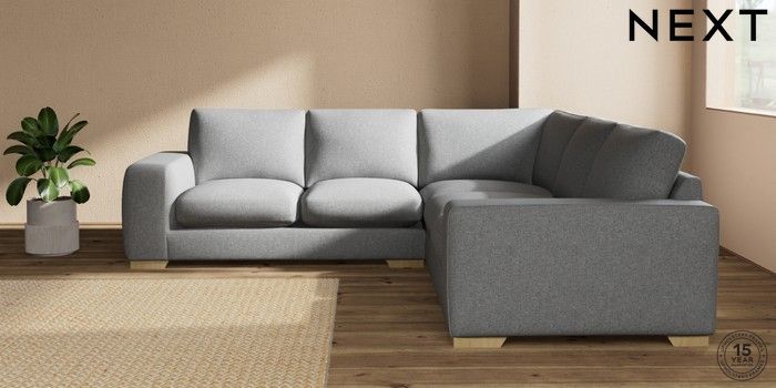7.2.10 Houghton Deep Sit Medium Corner Sofa - Universal Chunky Weave Mid Grey Large Square Angle - Light | Made Click here to use our website with more accessibility support, for example screen readers