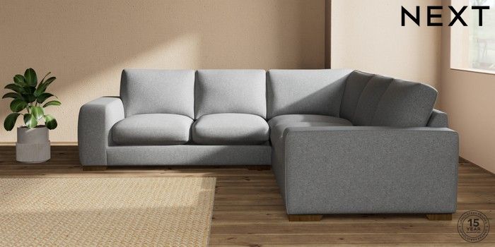 7.2.10 Houghton Deep Sit Medium Corner Sofa - Universal Chunky Weave Mid Grey Large Square Angle - Mid | Made Click here to use our website with more accessibility support, for example screen readers