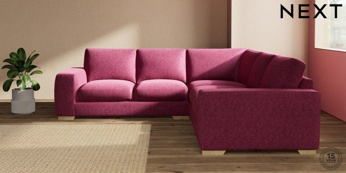 7.2.10 Houghton Deep Sit Medium Corner Sofa - Universal Cotswold Chenille Dark Raspberry Pink Large Square Angle - Light | Made Click here to use our website with more accessibility support, for example screen readers