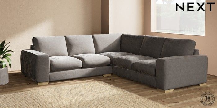 7.2.10 Houghton Deep Sit Medium Corner Sofa - Universal Distressed Velour French Grey Large Square Angle - Light | Made Click here to use our website with more accessibility support, for example screen readers