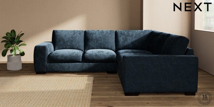 7.2.10 Houghton Deep Sit Medium Corner Sofa - Universal Distressed Velour Midnight Blue Large Square Angle - Dark | Made Click here to use our website with more accessibility support, for example screen readers
