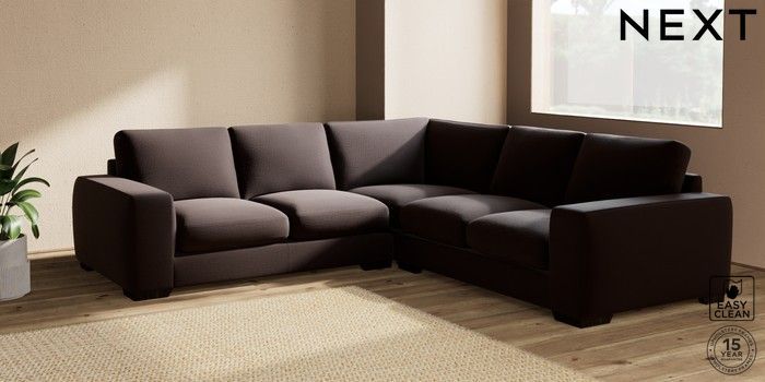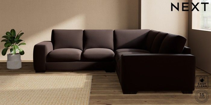 7.2.10 Houghton Deep Sit Medium Corner Sofa - Universal Fine Chenille Easy Clean Chocolate Brown Large Square Angle - Dark | Made Click here to use our website with more accessibility support, for example screen readers