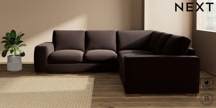 7.2.10 Houghton Deep Sit Medium Corner Sofa - Universal Fine Chenille Easy Clean Chocolate Brown Large Square Angle - Mid | Made Click here to use our website with more accessibility support, for example screen readers
