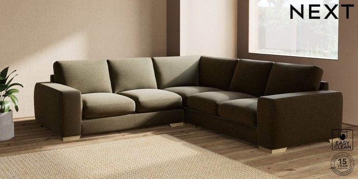 7.2.10 Houghton Deep Sit Medium Corner Sofa - Universal Fine Chenille Easy Clean Dark Moss Green Large Square Angle - Light | Made Click here to use our website with more accessibility support, for example screen readers