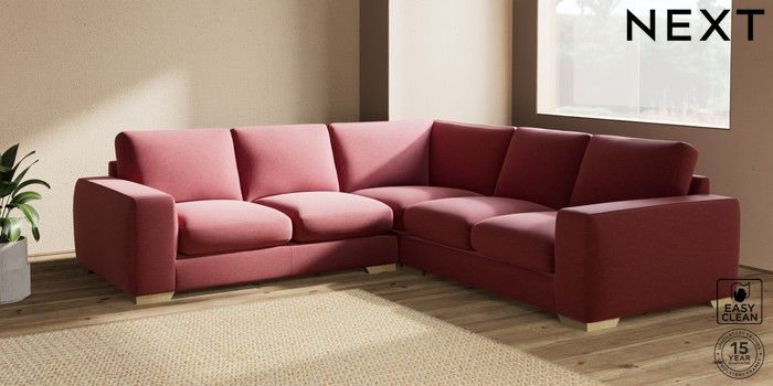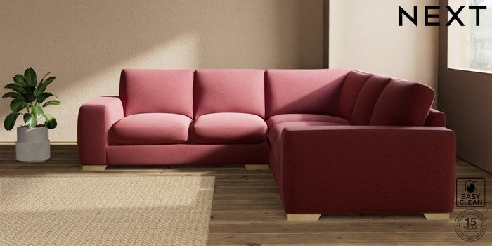 7.2.10 Houghton Deep Sit Medium Corner Sofa - Universal Fine Chenille Easy Clean Mid Pink Large Square Angle - Light | Made Click here to use our website with more accessibility support, for example screen readers