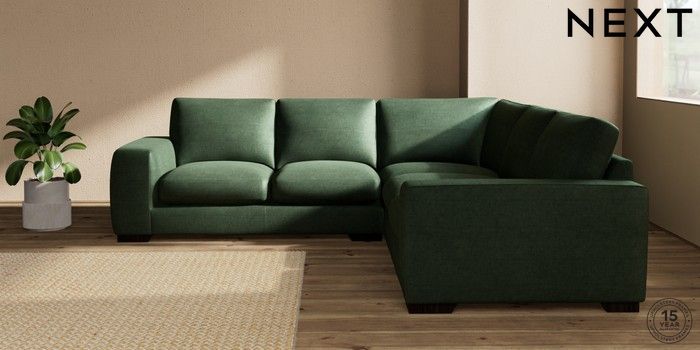 7.2.10 Houghton Deep Sit Medium Corner Sofa - Universal Luxe Chenille Dark Green Large Square Angle - Dark | Made Click here to use our website with more accessibility support, for example screen readers