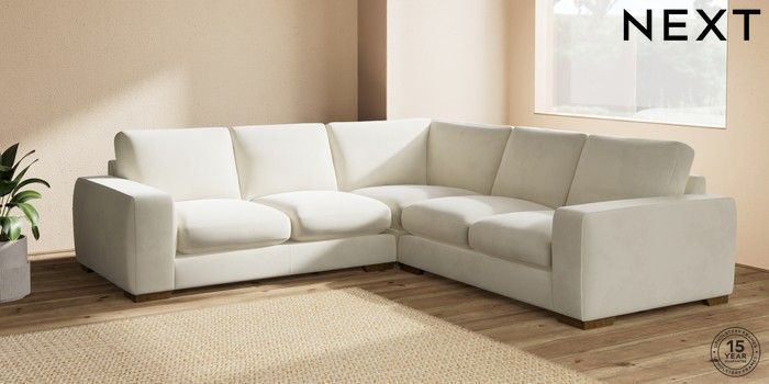 7.2.10 Houghton Deep Sit Medium Corner Sofa - Universal Luxe Chenille Oyster Large Square Angle - Mid | Made Click here to use our website with more accessibility support, for example screen readers