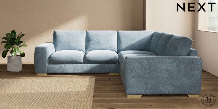 7.2.10 Houghton Deep Sit Medium Corner Sofa - Universal Plush Chenille Light Blue Large Square Angle - Light | Made Click here to use our website with more accessibility support, for example screen readers