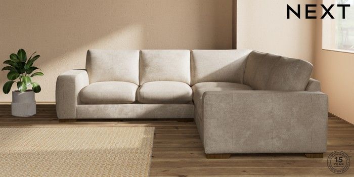 7.2.10 Houghton Deep Sit Medium Corner Sofa - Universal Plush Chenille Light Natural Large Square Angle - Mid | Made Click here to use our website with more accessibility support, for example screen readers