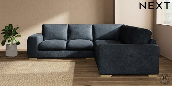 7.2.10 Houghton Deep Sit Medium Corner Sofa - Universal Plush Chenille Slate Blue Large Square Angle - Light | Made Click here to use our website with more accessibility support, for example screen readers