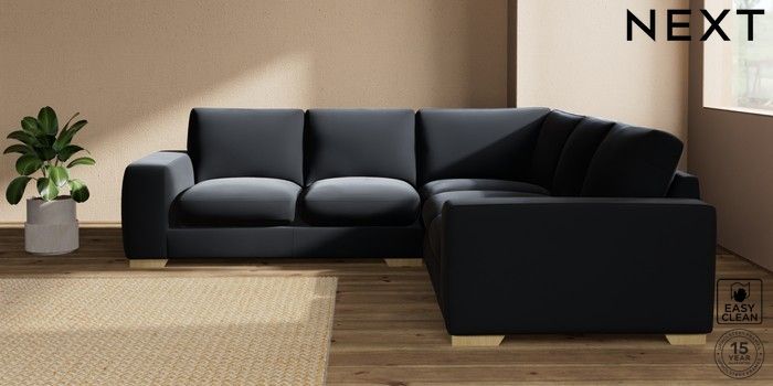 7.2.10 Houghton Deep Sit Medium Corner Sofa - Universal Plush Velvet Easy Clean Charcoal Grey Large Square Angle - Light | Made Click here to use our website with more accessibility support, for example screen readers