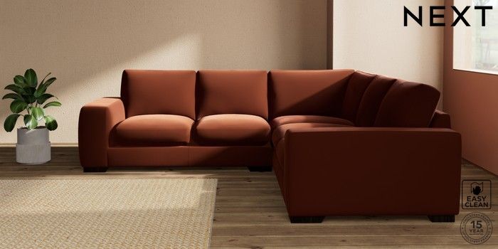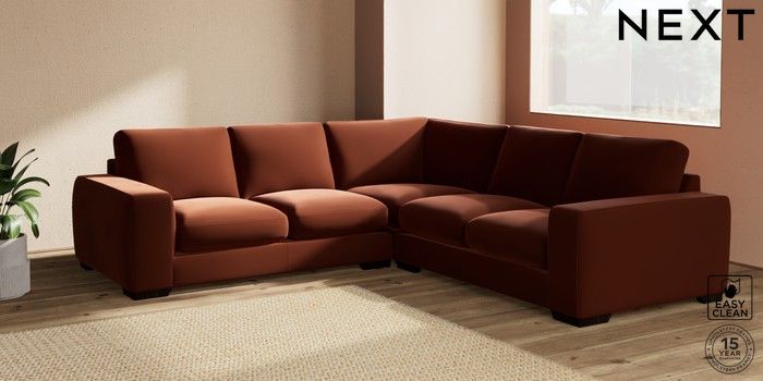 7.2.10 Houghton Deep Sit Medium Corner Sofa - Universal Plush Velvet Easy Clean Ginger Orange Large Square Angle - Dark | Made Click here to use our website with more accessibility support, for example screen readers