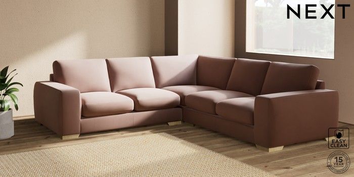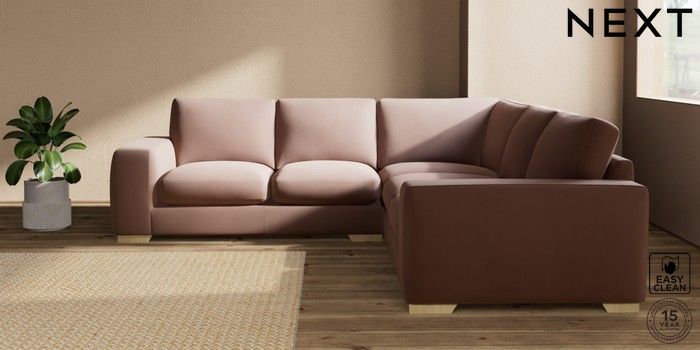 7.2.10 Houghton Deep Sit Medium Corner Sofa - Universal Plush Velvet Easy Clean Mid Natural Large Square Angle - Light | Made Click here to use our website with more accessibility support, for example screen readers