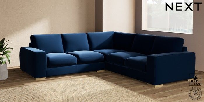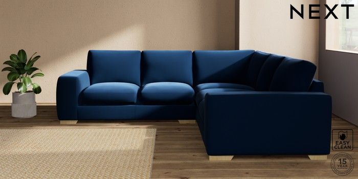 7.2.10 Houghton Deep Sit Medium Corner Sofa - Universal Plush Velvet Easy Clean Navy Blue Large Square Angle - Light | Made Click here to use our website with more accessibility support, for example screen readers