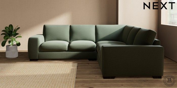 7.2.10 Houghton Deep Sit Medium Corner Sofa - Universal Relaxed Linen Look Dark Green Large Square Angle - Dark | Made Click here to use our website with more accessibility support, for example screen readers