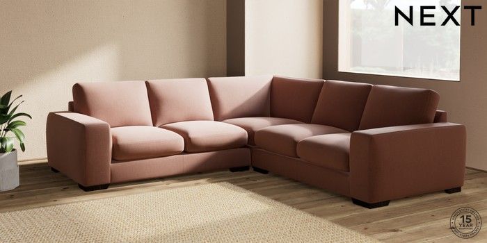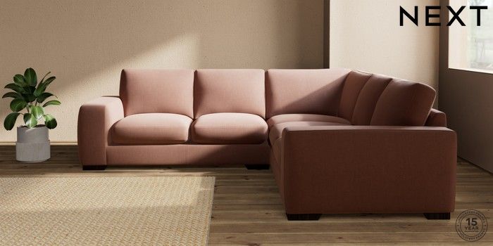 7.2.10 Houghton Deep Sit Medium Corner Sofa - Universal Relaxed Linen Look Light Rust Brown Large Square Angle - Dark | Made Click here to use our website with more accessibility support, for example screen readers