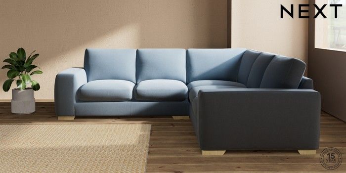 7.2.10 Houghton Deep Sit Medium Corner Sofa - Universal Relaxed Linen Look Mid Blue Large Square Angle - Light | Made Click here to use our website with more accessibility support, for example screen readers