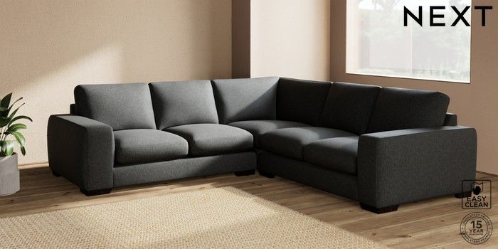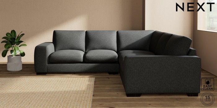 7.2.10 Houghton Deep Sit Medium Corner Sofa - Universal Tweedy Blend Easy Clean Charcoal Grey Large Square Angle - Dark | Made Click here to use our website with more accessibility support, for example screen readers