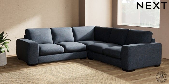 7.2.10 Houghton Deep Sit Medium Corner Sofa - Universal Tweedy Chenille Navy Blue Large Square Angle - Dark | Made Click here to use our website with more accessibility support, for example screen readers