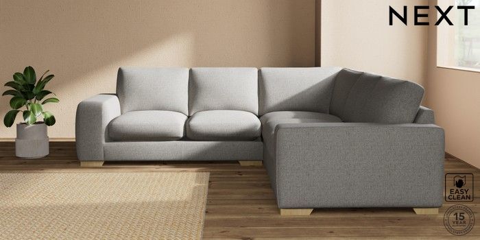 7.2.10 Houghton Deep Sit Medium Corner Sofa - Universal Woven Chenille Easy Clean Light Grey Large Square Angle - Light | Made Click here to use our website with more accessibility support, for example screen readers