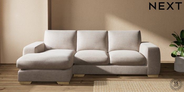 7.2.10 Houghton Deep Sit Medium Sofa Chaise - Left Hand Boucle Chenille Light Natural Large Square Angle - Light | Made Click here to use our website with more accessibility support, for example screen readers