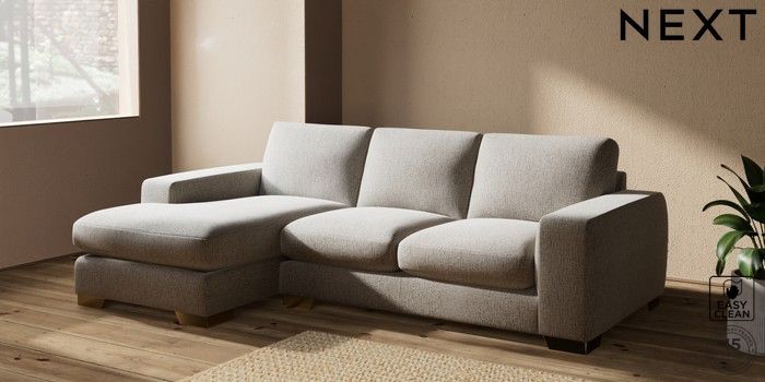 7.2.10 Houghton Deep Sit Medium Sofa Chaise - Left Hand Chunky Boucle Easy Clean Dove Large Square Angle - Brushed Brass | Made Click here to use our website with more accessibility support, for example screen readers