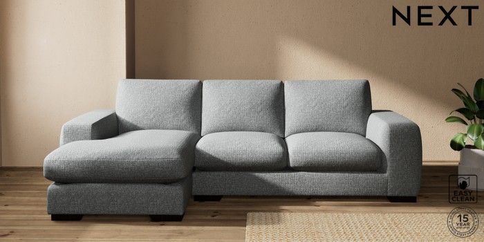 7.2.10 Houghton Deep Sit Medium Sofa Chaise - Left Hand Chunky Boucle Easy Clean Mid Grey Large Square Angle - Dark | Made Click here to use our website with more accessibility support, for example screen readers