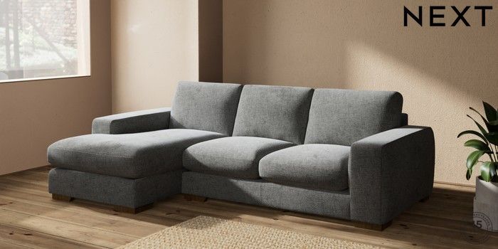 7.2.10 Houghton Deep Sit Medium Sofa Chaise - Left Hand Chunky Chenille Dark Grey Large Square Angle - Mid | Made Click here to use our website with more accessibility support, for example screen readers