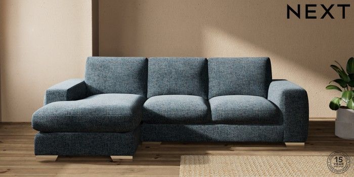7.2.10 Houghton Deep Sit Medium Sofa Chaise - Left Hand Chunky Chenille Dark Navy Blue Large Square Angle - Chrome Metal | Made Click here to use our website with more accessibility support, for example screen readers