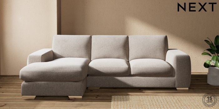 7.2.10 Houghton Deep Sit Medium Sofa Chaise - Left Hand Chunky Chenille Light Dove Large Square Angle - Chrome Metal | Made Click here to use our website with more accessibility support, for example screen readers
