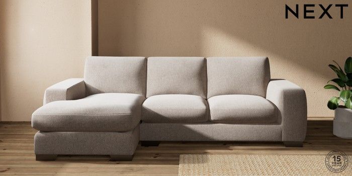 7.2.10 Houghton Deep Sit Medium Sofa Chaise - Left Hand Chunky Chenille Light Dove Large Square Angle - Gunmetal | Made Click here to use our website with more accessibility support, for example screen readers