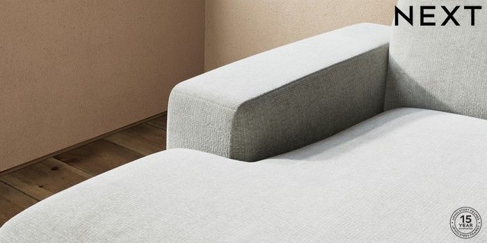7.2.10 Houghton Deep Sit Medium Sofa Chaise - Left Hand Chunky Chenille Light Grey Large Square Angle - Brushed Brass | Made Click here to use our website with more accessibility support, for example screen readers