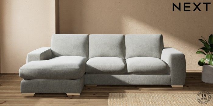 7.2.10 Houghton Deep Sit Medium Sofa Chaise - Left Hand Chunky Chenille Light Grey Large Square Angle - Chrome Metal | Made Click here to use our website with more accessibility support, for example screen readers