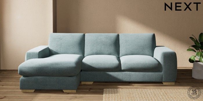 7.2.10 Houghton Deep Sit Medium Sofa Chaise - Left Hand Chunky Chenille Light Teal Green Large Square Angle - Light | Made Click here to use our website with more accessibility support, for example screen readers