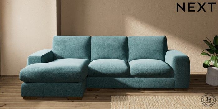 7.2.10 Houghton Deep Sit Medium Sofa Chaise - Left Hand Chunky Chenille Mid Teal Green Large Square Angle - Mid | Made Click here to use our website with more accessibility support, for example screen readers