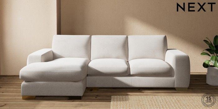 7.2.10 Houghton Deep Sit Medium Sofa Chaise - Left Hand Chunky Chenille Oyster Large Square Angle - Brushed Brass | Made Click here to use our website with more accessibility support, for example screen readers
