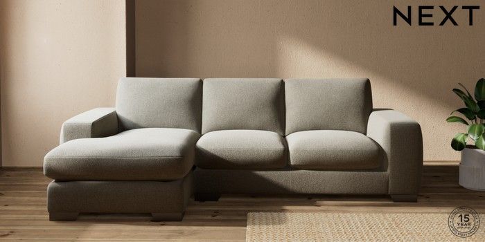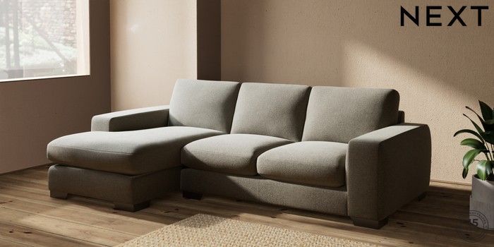 7.2.10 Houghton Deep Sit Medium Sofa Chaise - Left Hand Chunky Marl Light Olive Green Large Square Angle - Gunmetal | Made Click here to use our website with more accessibility support, for example screen readers