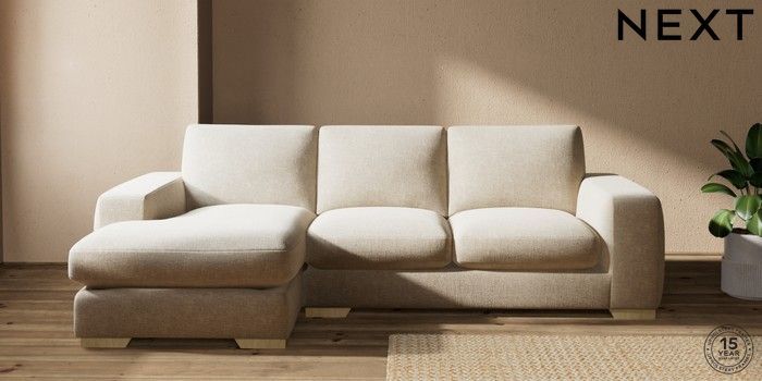 7.2.10 Houghton Deep Sit Medium Sofa Chaise - Left Hand Chunky Weave Cream Large Square Angle - Light | Made Click here to use our website with more accessibility support, for example screen readers
