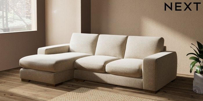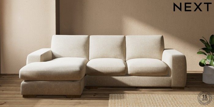 7.2.10 Houghton Deep Sit Medium Sofa Chaise - Left Hand Chunky Weave Cream Large Square Angle - Mid | Made Click here to use our website with more accessibility support, for example screen readers