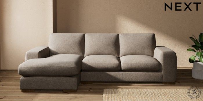 7.2.10 Houghton Deep Sit Medium Sofa Chaise - Left Hand Chunky Weave Dark Natural Large Square Angle - Mid | Made Click here to use our website with more accessibility support, for example screen readers