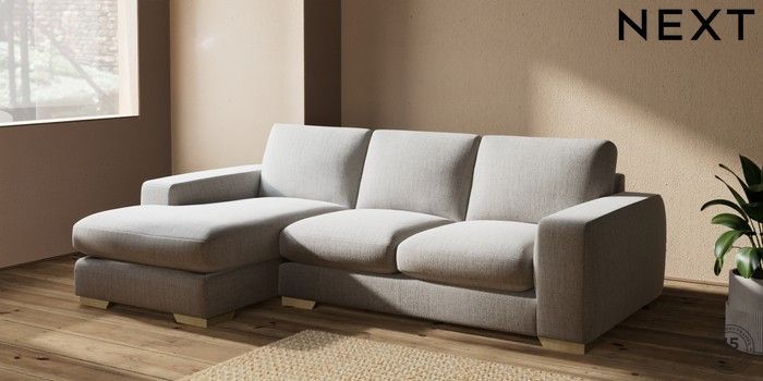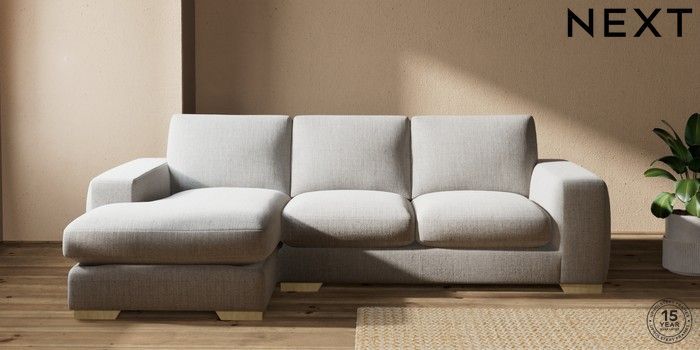 7.2.10 Houghton Deep Sit Medium Sofa Chaise - Left Hand Chunky Weave Dove Grey Large Square Angle - Light | Made Click here to use our website with more accessibility support, for example screen readers