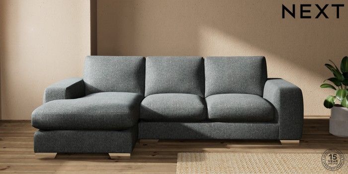 7.2.10 Houghton Deep Sit Medium Sofa Chaise - Left Hand Cotswold Chenille Dark Grey Large Square Angle - Chrome Metal | Made Click here to use our website with more accessibility support, for example screen readers