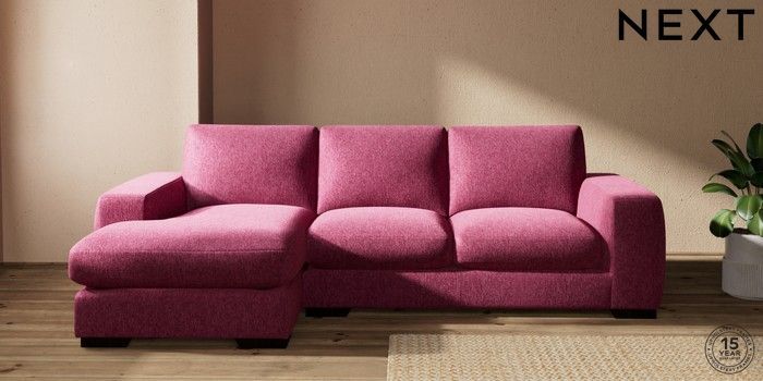 7.2.10 Houghton Deep Sit Medium Sofa Chaise - Left Hand Cotswold Chenille Dark Raspberry Pink Large Square Angle - Dark | Made Click here to use our website with more accessibility support, for example screen readers