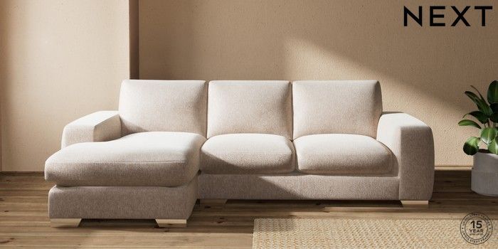 7.2.10 Houghton Deep Sit Medium Sofa Chaise - Left Hand Cotswold Chenille Light Natural Large Square Angle - Chrome Metal | Made Click here to use our website with more accessibility support, for example screen readers