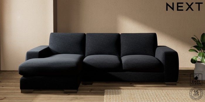 7.2.10 Houghton Deep Sit Medium Sofa Chaise - Left Hand Fine Chenille Easy Clean Black Large Square Angle - Gunmetal | Made Click here to use our website with more accessibility support, for example screen readers