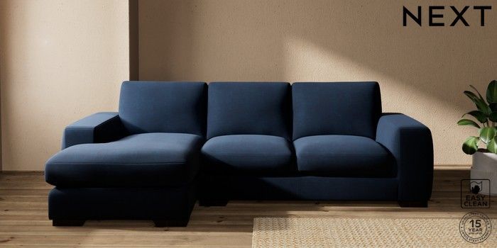 7.2.10 Houghton Deep Sit Medium Sofa Chaise - Left Hand Fine Chenille Easy Clean Dark Navy Blue Large Square Angle - Dark | Made Click here to use our website with more accessibility support, for example screen readers